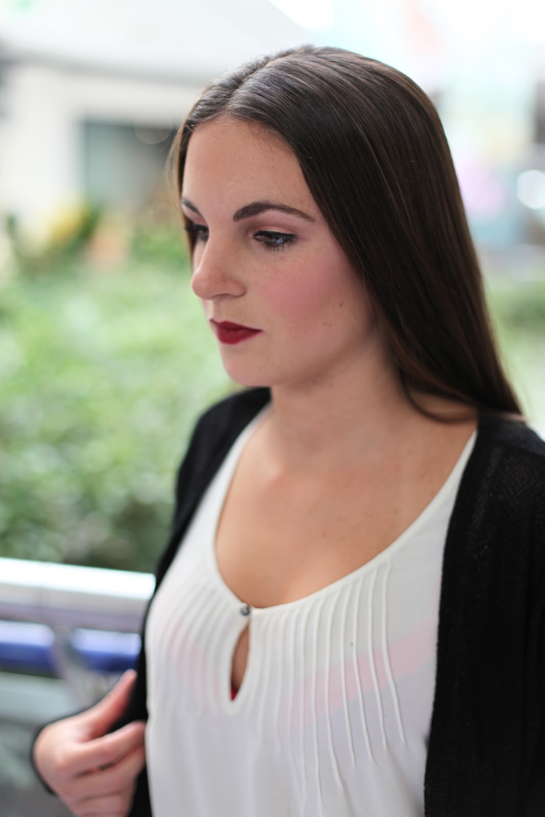 A maquilhagem foi novamente repensada, tendo agora os destaques sido trocados: boca nude, apenas com um gloss super natural, e olhos em tons terra, conjugados com cor de ameixa.