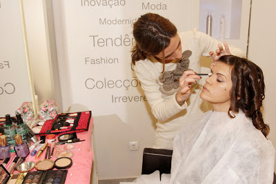 Esta é uma proposta de maquilhagem com base na correcção e luminosidade do rosto, com pequenos apontamentos em rosa natural na zona das maçãs do rosto e na boca, de forma a reforçar as cores saudáveis do rosto. Os olhos contam com sombras em tons de cinzas, rosas e brancos, mas sempre de aplicação soft, de forma a conferir luz, sem parecer excessivamente maquilhada.